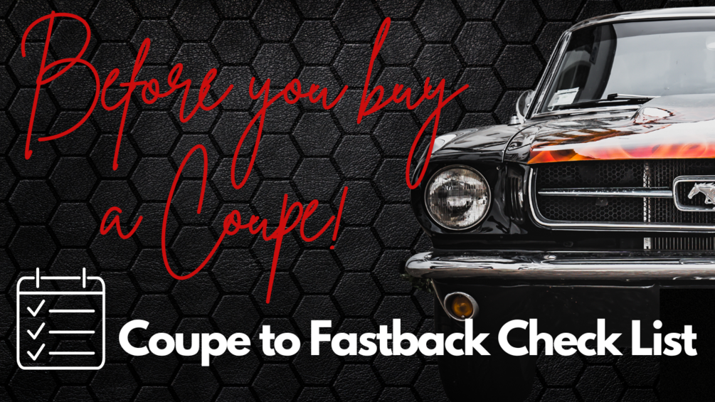 Before you purchase a Mustang Coupe you need to know what to look for. Not every Coupe Mustang is a good candidate to be converted to a Fastback. This list will help you determine what is a good buy or what to pass on.